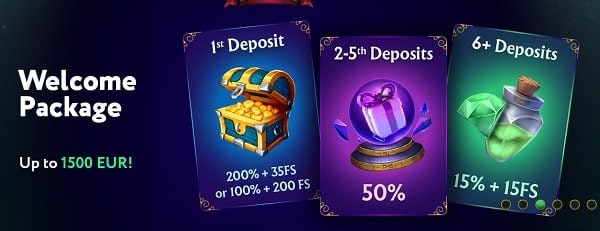 - 200% up to 49 EUR + 35 free spins (min. dep. 15 EUR)