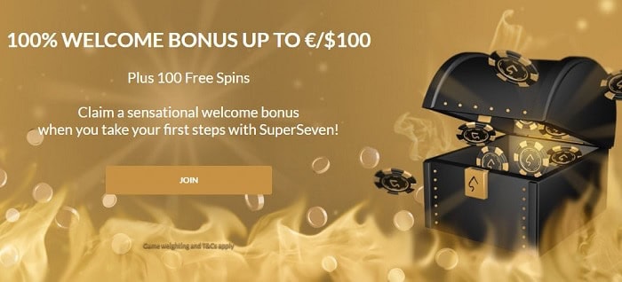 Open your account at SuperSeven Casino and play the best games for free! All new players to this online casino receive 100 free spins on slot games and a 100% bonus on the first deposit. In addition, there are different tournaments, prize draws and daily promotions to take part in. Read our SuperSeven Review and start your Super Gaming Adventure!